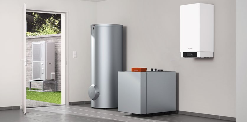 Hybridheizungen bestehen aus mindestens zwei Wärmeerzeugern, die gemeinsam zum individuellen Energiemix beitragen. Zentraler Bestandteil ist eine Wärmepumpe, die umweltfreundlich und effizient für Wohlfühltemperaturen sorgt. Zu dieser regenerativen gesellt sich eine leistungsstarke, fossile Komponente, z. B. Gas-Brennwert.